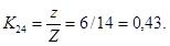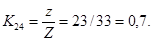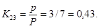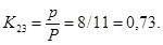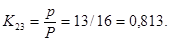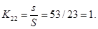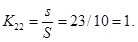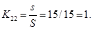 К2 = G22 · К22 + G23 · К23 + G24 · К24 = 0,333 · 1 + 0,333 · 0,7 + 0,333 · 0,7 = 0,8.