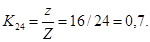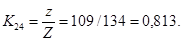 К2 = G21 · К21 + G22 · К22 + G23 · К23 + G24 · К24 = 0,4 · 0,66 + 0,2 · 1 + 0,2 · 0,813 + 0,2 · 0,813 = 0,789