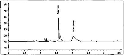 При работе на капиллярной колонке для анализа ацетона и метанола используют градуировочную шкалу, полученную с помощью растворов №№ 1 - 2 - 3 - 4 - 5 - 6 - 7 - 8.
