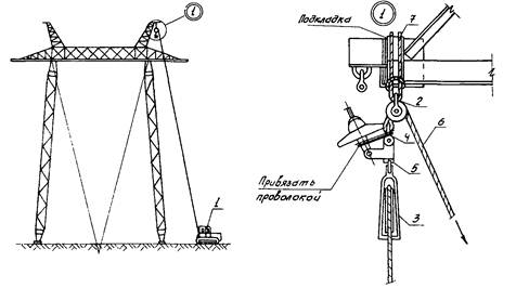 Рис. 1-4. Подъем проводов в раскаточных роликах