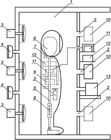 газа в камере; 11 - газоанализатор модельного газа в подкостюмном