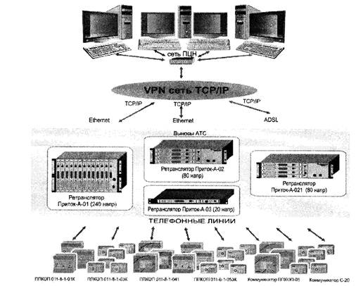 - наличие связи от ретранслятора до ПЦО по оптическим каналам с использованием виртуальной локальной сети АТС по протоколу TCP/IP;