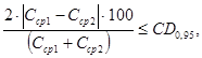 Критическая разность для результатов анализа, полученных в двух лабораториях, CD0,95, (n1 = n2 = 2) |