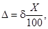 δ - граница относительной погрешности методики (показатель точности по диапазону концентраций, таблица), %.
