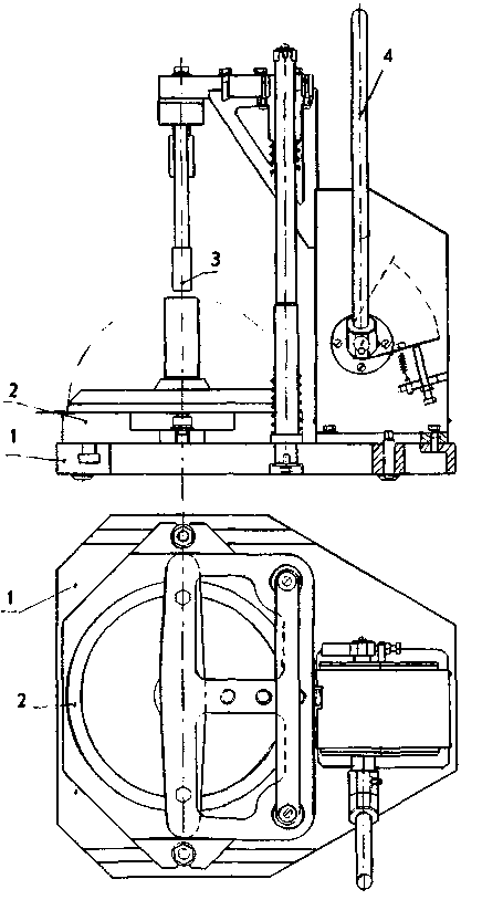 1. Основание; 2. Планшайба; 3. Пробойник; 4. Рукоятка