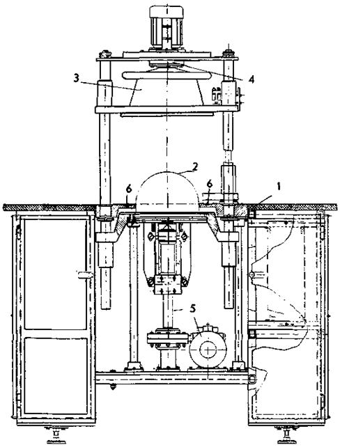1. Станина; 2. Подставка; 3. Монтажная ячейка; 4. Прижимное кольцо; 5. Ось; 6. Зажимное устройство