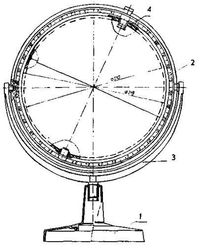 1. Основание; 2. Кольцо-меридиан; 3. Дуга; 4. Шкалы часовых поясов