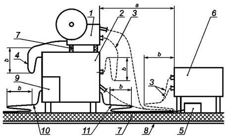 Рисунок 1 - Типовое расположение оборудования для дуговой сварки при испытаниях