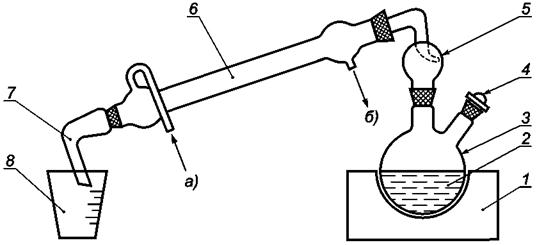 плитка); 2 - проба анализируемой воды; 3 - перегонная колба; |