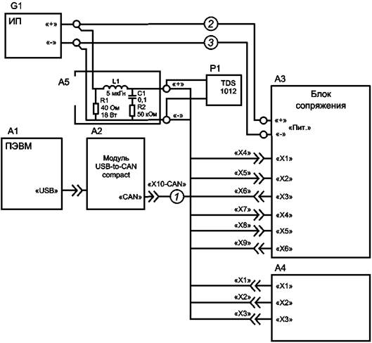 А2 - модуль USB-to-CAN; A3 - V - образный эквивалент сети по ГОСТ