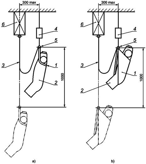 Подвешивают манекен корпуса посредством спасательной петли, затем поднимают манекен на 1000+50 мм с удалением от осевой линии оборудования не более 300 мм (см. рисунок 7). Удерживают его с помощью устройства быстрого расцепления.