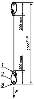 Регулируют длину таким образом, чтобы при нагрузке 100+1 кг длина испытательного стропа, включая длину петли заделки обоих концов, составляла 2000+100 мм (см. рисунок 2).