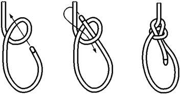 Заделывают концы веревки петлями с помощью узлов булинь (см. рисунок 3) и обеспечивают длину петли и узла не более 200 мм.