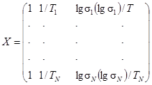 Анализ многофакторной линейной регрессии основан на скорости процессов, наиболее точно описываемых моделью отношения логарифма напряжения (lg напряжения) к логарифму времени (lg времени). Для оценки прогнозируемого значения применяемой модели принято использовать ожидаемый 97,5 %-ный нижний прогнозируемый предел длительной прочности, эквивалентный нижнему доверительному пределу 95 %-ного доверительного интервала прогнозируемого значения. Данное соотношение применяют в математических расчетах с использованием статистических методов.