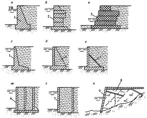 6.1 В зависимости от конструкции и назначения подпорные стены подразделяются на следующие виды: