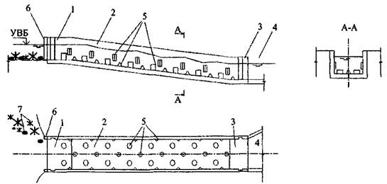 4 - тракт; 5 - вплывные отверстия; 6 - элементы