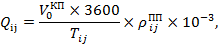 масса рабочей жидкости, вычисленная по результатам измерений ТПР (или компакт-прувера) и поточного ПП при i-м измерении в j-й точке расхода, т |