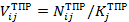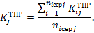 коэффициент преобразования ТПР в j-й точке расхода и используемый для определения MX массомера в j-й точке расхода, имп/м3 |
