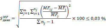 составляющая систематической погрешности, вызванная усреднением (аппроксимацией) коэффициента коррекции массомера MF в рабочем диапазоне, % |