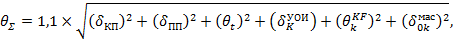 систематическая составляющая погрешности массомера в рабочем диапазоне и k-м поддиапазоне расхода соответственно, % |