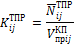 коэффициент преобразования ТПР, определенный за i-ю серию проходов поршня в j-й точке расхода, имп/м3 |