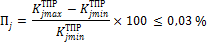 повторяемость коэффициентов преобразования ТПР в j-й точке расхода, % |