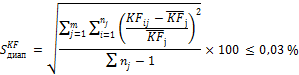 СКО результатов определений значений K-фактора (имп/т) для точек расхода в k-м поддиапазоне расхода, % |