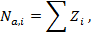 9. Показатель "Количество разработанных ядерных технологий, соответствующих мировому уровню или превосходящих его (нарастающим итогом)" (Na,i) рассчитывается путем суммирования ежегодно разработанных в результате реализации Программы ядерных технологий, соответствующих мировому уровню или превосходящих его, начиная с 2010 года (первого года реализации Программы) по формуле:
