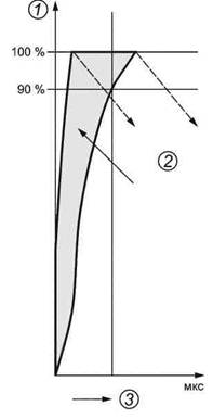 1 - действующее напряжение; 2 - диапазон времени подъема фронта волны; 3 - не более 75 мкс