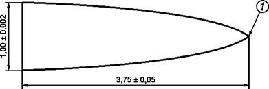 Острие изготовленной из хромированной стали иглы диаметром 1,0 мм должно быть на расстоянии 3,75 мм вдоль оси, как указано на рисунке В.1. Радиус острия иглы должен быть менее или равен 0,03 мм. Угол острия иглы не должен превышать 16°.