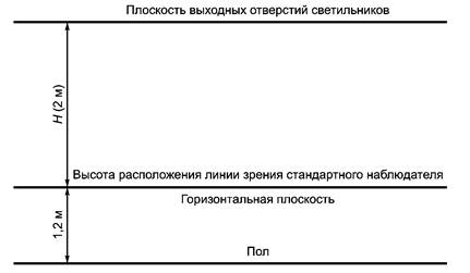 3.11 плоскость расположения линии зрения стандартного наблюдателя: Горизонтальная плоскость, располагающаяся на высоте 1,2 м от пола.