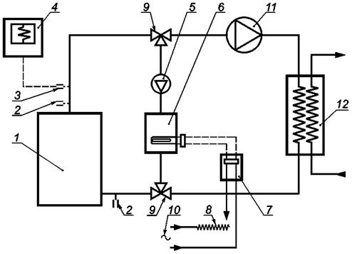 1 - котел; 2 - теплообменник; 3 - управляющий клапан I; 4 -