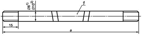 Размеры в мм 1 - металл сварного шва; а = 130 для кристаллизационного растрескивания, 110 - для ликвационного растрескивания 1) Для ликвационного растрескивания. 2) Для кристаллизационного растрескивания. Рисунок 1 - Размеры образца для испытания на растяжение в горячем состоянии |