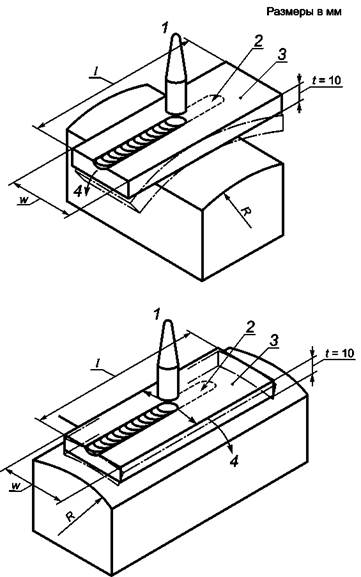 Рисунок 3 иллюстрирует общие принципы методов испытания, когда для нагружения образца и синхронизации процедур сварки и нагружения требуется специальное оборудование. Поскольку оно имеет значительные различия, воспроизводимость результатов при испытаниях в разных лабораториях может быть довольно низкой. Однако испытания, проводимые в одной лаборатории, можно применять для ранжирования материалов и их сравнения с материалами, сопротивляемость которых образованию трещин в практических условиях известна.