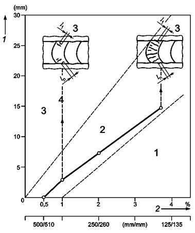 трещин; область 2 - увеличенный риск образования горячих трещин; область