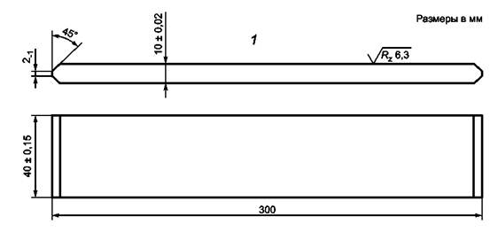 Точные размеры образца на плоскостное растяжение определяются мощностью испытательной машины и обычно составляют (40 × 10 × 300) мм (ширинах толщинах длина), как показано на рисунке 5. Поверхность образца должна быть обработана на станке и шлифована в продольном направлении до достижения параметра шероховатости Rz £ 6,3 мкм. Следует избегать перпендикулярных направлению сварки зарубок на поверхности, которые могут вызвать ложные трещины. Образец для испытания на плоскостное растяжение сваривают в специальном зажимном приспособлении для обеспечения оборудованием программируемого деформирования.