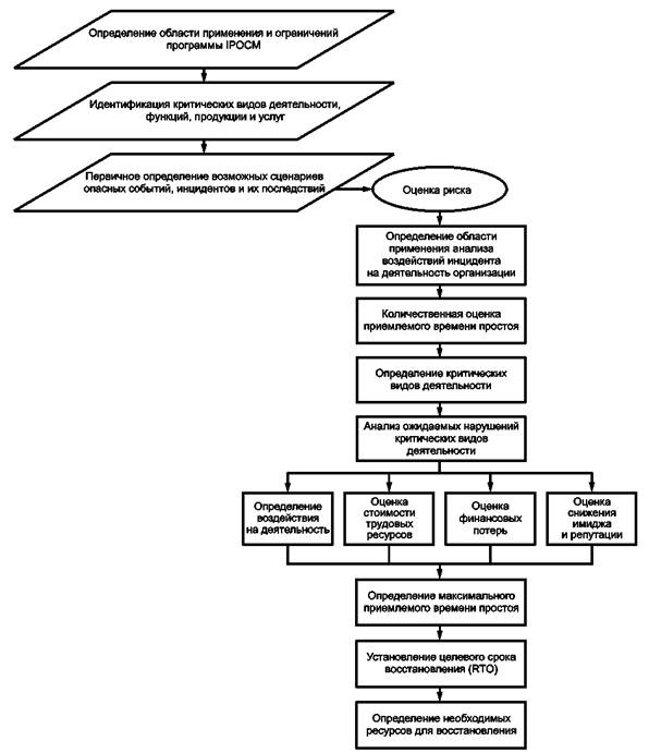 организации, включая исследование и принятие решений в условиях неопределенности. На всех уровнях организации должно быть понимание того, что риск присущ каждому принимаемому решению и виду деятельности и может вызвать ее нарушение/разрушение. Поэтому на всех уровнях организации должен быть проведен анализ способов управления в условиях нарушения/разрушения.