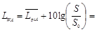 3.1 корректированный по A уровень звуковой мощности (A-weighted sound power level) LWA, дБА: Величина, равная десятикратному десятичному логарифму отношения звуковой мощности испытуемого источника шума, измеренной при частотной характеристике A шумомера, к опорной звуковой мощности W0 [W0 = 1 пВт (10-12 Вт)].