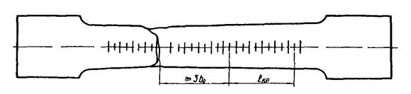 2.5. На рабочей части образца рекомендуется наносить разметку - неглубокие керны, риски или иные метки через каждые 5 или 10 мм.