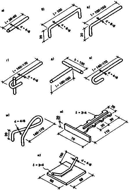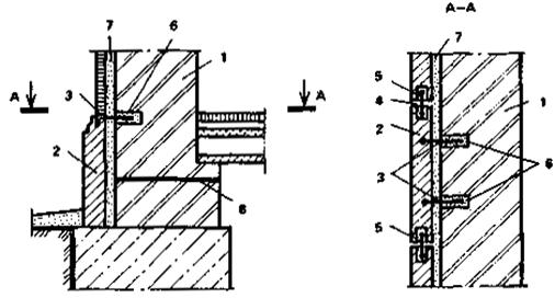 Для крепления плит к стене в качестве анкеров используют, как правило, пластинчатые распорные закрепы (могут применяться также Т-образные анкера), размещаемые в торцевых гранях плит. Каждую плиту, независимо от размеров, следует крепить не менее чем двумя анкерами.