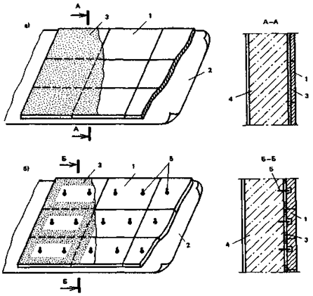 5.59. Для крепления облицовочных плит толщиной 10 мм и менее внутри зданий рекомендуется использовать полимеррастворные композиции. Особенно эффективно применение полимеррастворов, обеспечивающих прочность, надежность и долговечность соединения элементов облицовки со стеной, при напряженных условиях эксплуатации (повышенная влажность, температурные перепады, механические, динамические и другие воздействия).