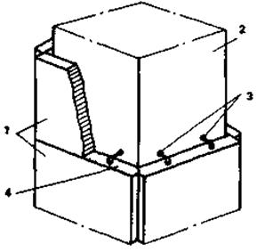 В местах расположения закреп вырубают углубления в торцах плит для размещения вилки закрепы. Расположение анкерных креплений в швах облицовки зависит от принятой системы швов. При облицовке по системе шов в шов закрепы располагают в местах пересечения горизонтальных и вертикальных швов. В случае правильного чередования вертикальных швов крепления устанавливаются в углах смежных плит, а при свободной перевязке рядов облицовки - только в вертикальных швах на расстоянии 100 мм от горизонтального шва до оси закрепы.