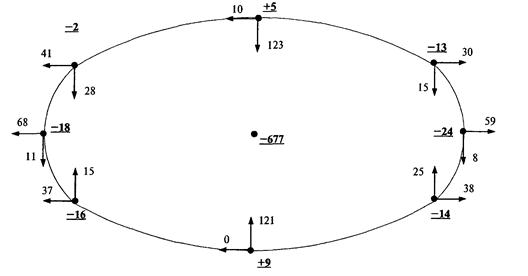 ↓12 - направление и величина планового смещения относительно 1 цикла (27.10.04), мм;