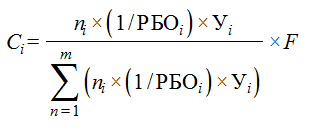 F - общий размер субсидии, предусмотренной в федеральном бюджете на проведение мероприятий по формированию в субъектах Российской Федерации сети базовых образовательных учреждений.