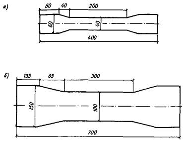 Рис. 1. Контрольные образцы-восьмерки. Размер рабочего сечения средней части, мм: а - 40´40; б - 100´100;