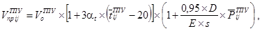 вместимость калиброванного участка ТПУ, приведенная к рабочим условиям (температуре и давлению рабочей жидкости в ТПУ) при i-м измерении в j-й точке расхода, м3 |