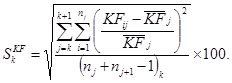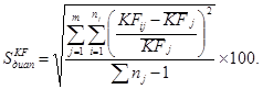 CKO результатов определений средних значений К-фактора (имп./т) в k-м поддиапазоне расхода, % |