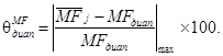 составляющая систематической погрешности, вызванной усреднением коэффициента коррекции массомера MF в рабочем диапазоне, % |