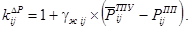 коэффициент, учитывающий разность давления рабочей жидкости в поточном ПП и ТПУ при i-м измерении в j-й точке расхода |