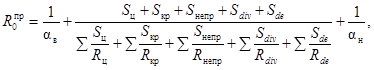 Общее сопротивление теплопередаче светопрозрачной ограждающей (фасадной конструкции) определяют по выражению (2):